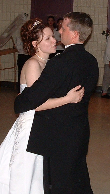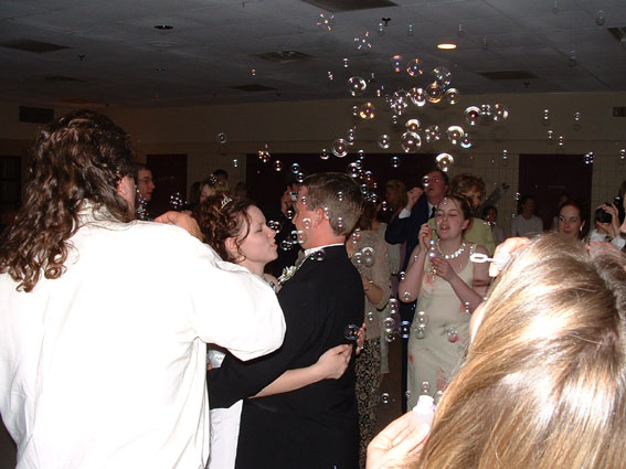 Chrissy and Mat kick off the dancing while the crowd showers them with